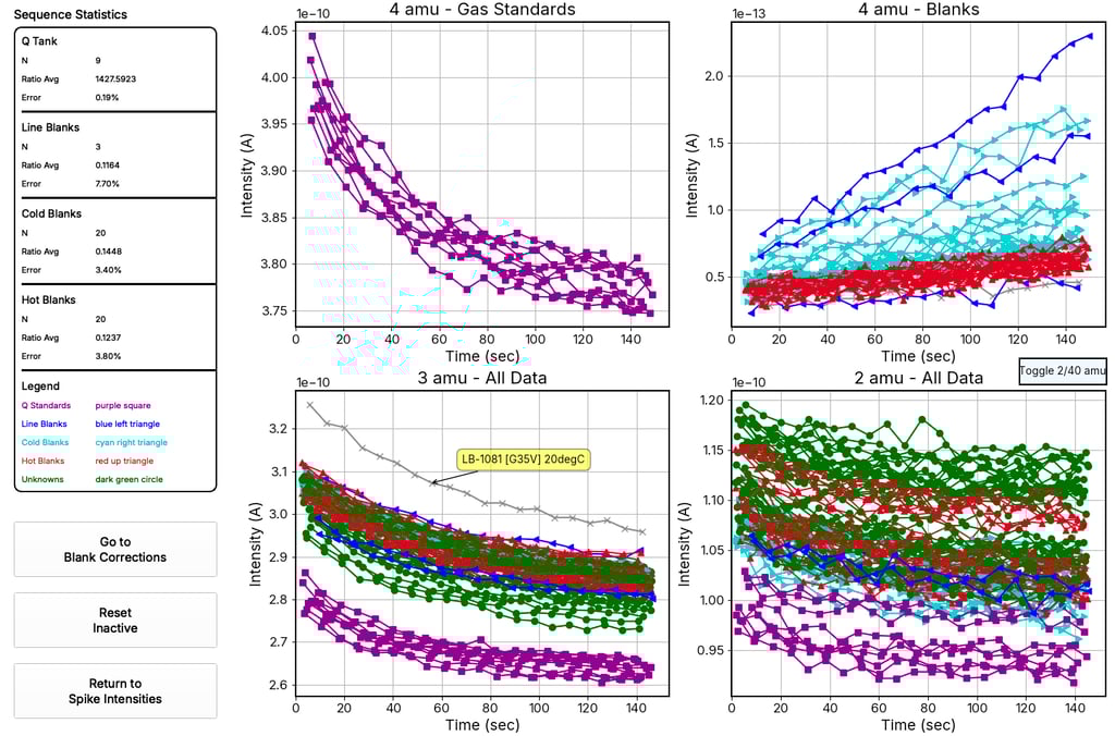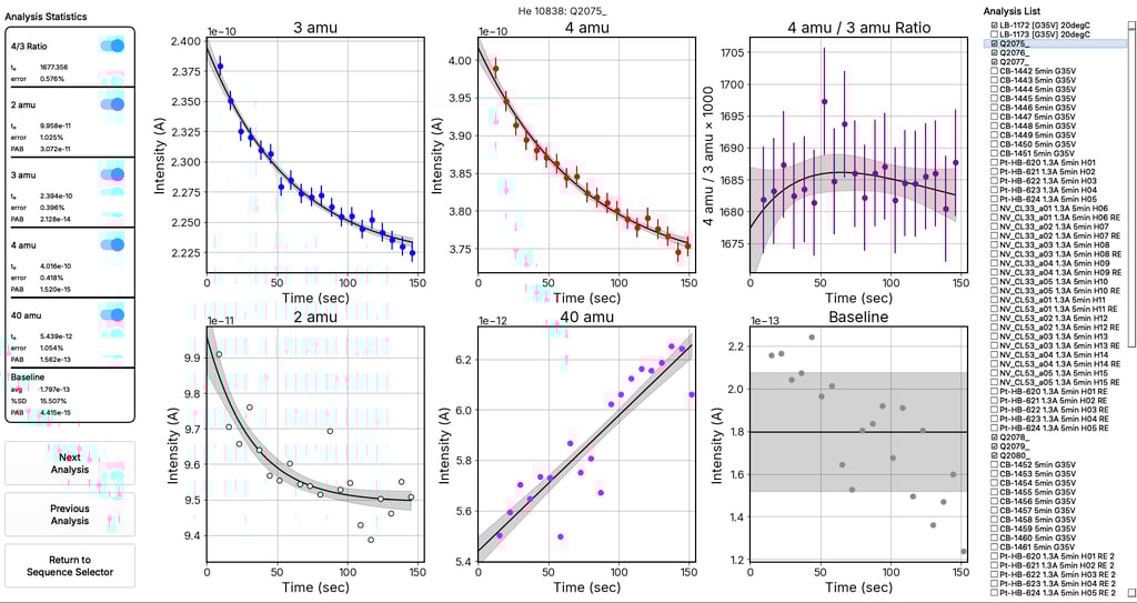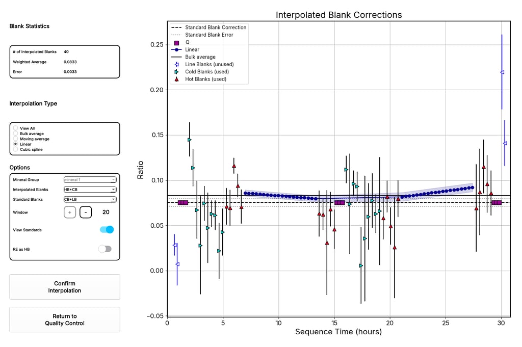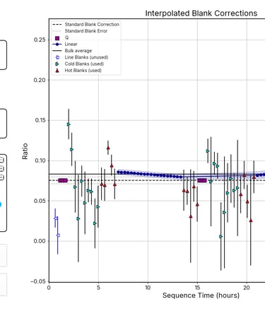 Multi-Mineral Sequence Support - Native support for mixed-mineral sequences (e.g., zircon and apatite) with independent blank corrections, error propagation, and result compartmentalization.
