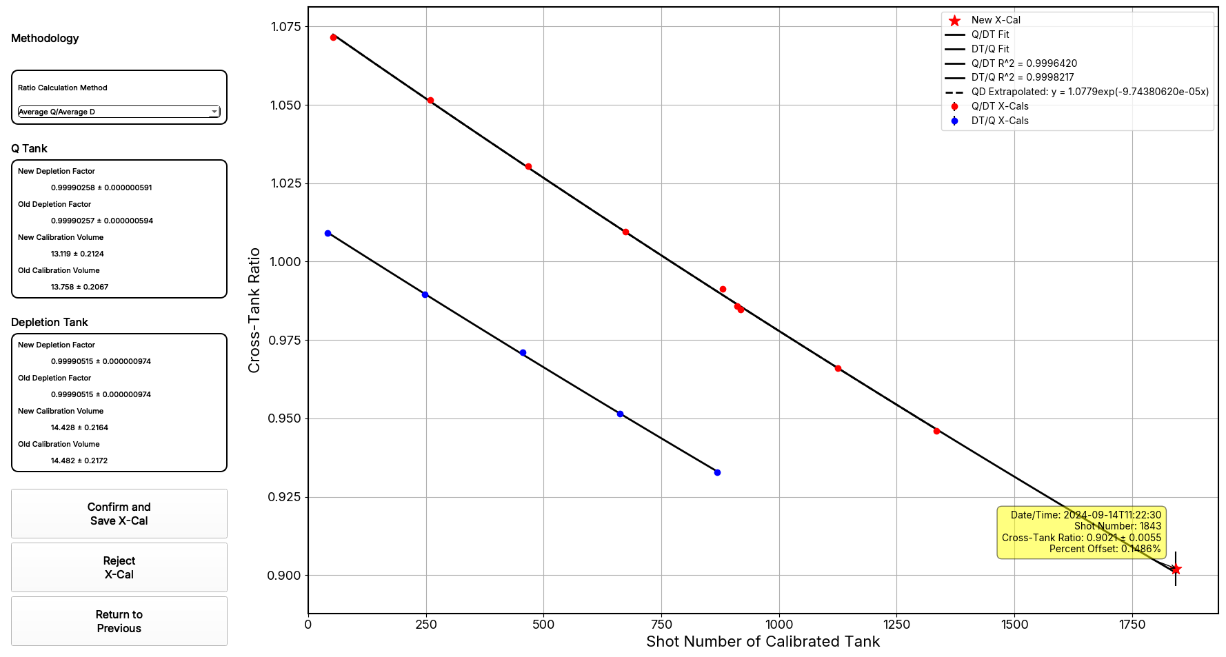 Upon clicking "Confirm and Save X-Cal", the program adds the new data to the license file, ensuring all data going forward are calculated with the new, more accurate calibrations.